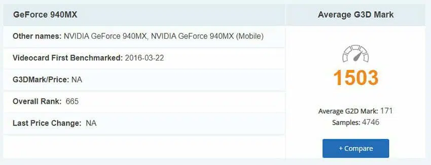 | GPU | NVIDIA GeForce 940MX 2GB GDDR5 |