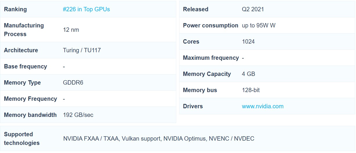 | Graphics (GPU) | NVIDIA Quadro T1200 4GB GDDR6 |