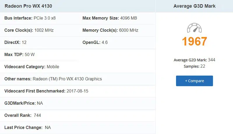 - مدل: 2 گیگابایت AMD Radeon Pro WX 4130
