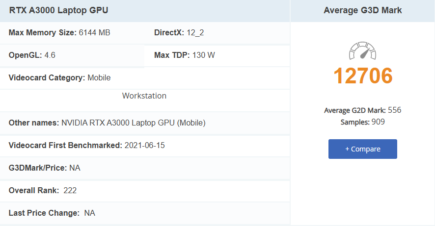 | GPU | Nvidia RTX A3000 6GB GDDR6 |