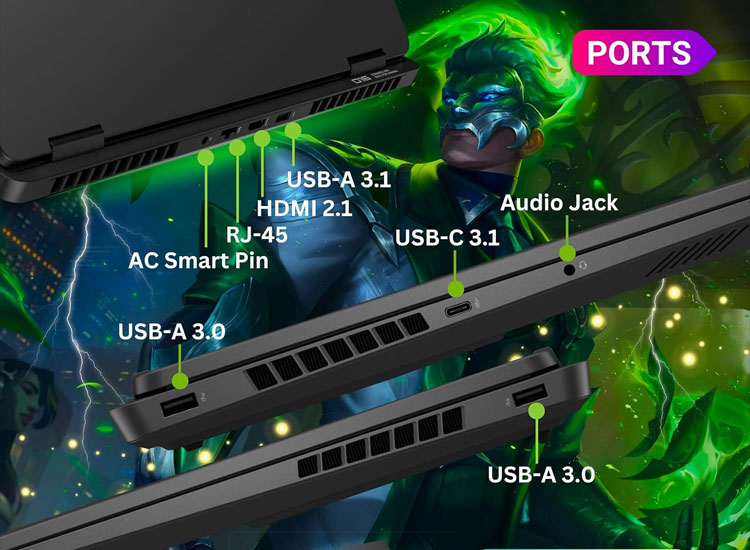 از نظر پورت ها، این لپ تاپ به USB Type-C، USB 3.2، HDMI، LAN و جک هدفون مجهز است و نیاز اکثر کاربران حرفه ای را پوشش می دهد. پشتیبانی از Wi-Fi نسل جدید و بلوتوث پایدار نیز اتصال سریع و بدون وقفه را تضمین می کند.