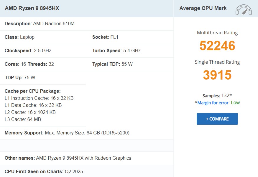 | CPU | AMD Ryzen 9 8945HX (Released 2024) |