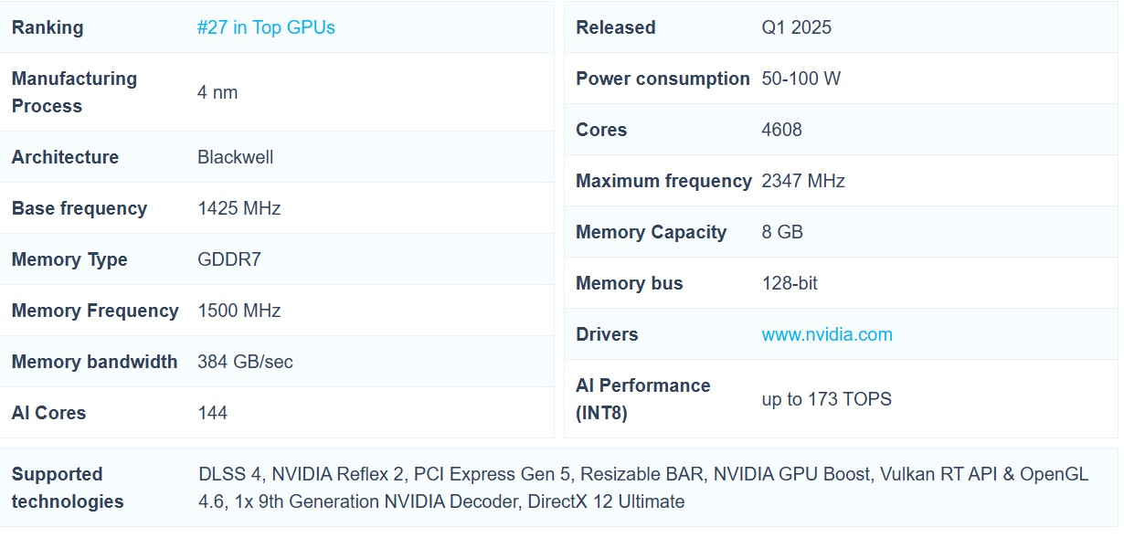 | GPU | NVIDIA GeForce RTX 5070 8GB GDDR6 (Released 2025) |