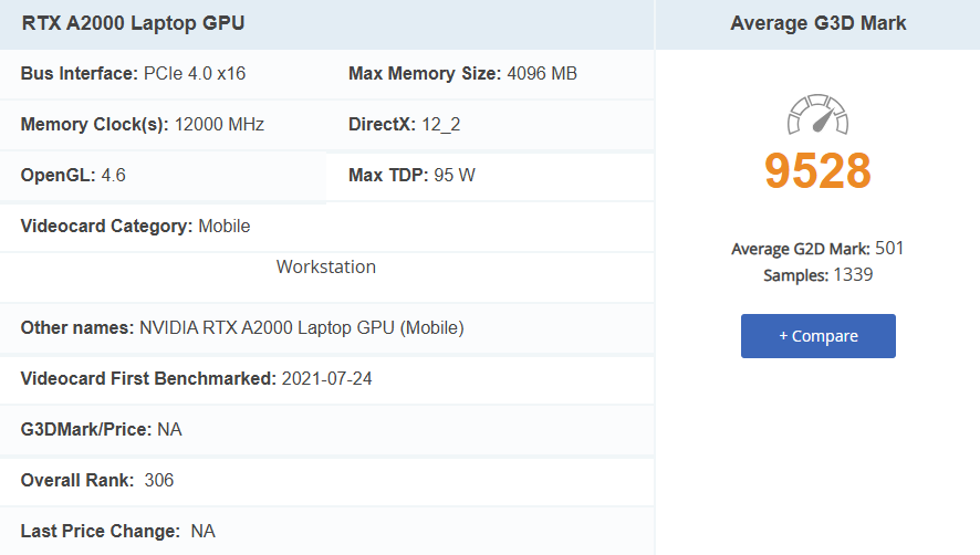 | GPU | NVIDIA RTX A2000 4GB GDDR6 |