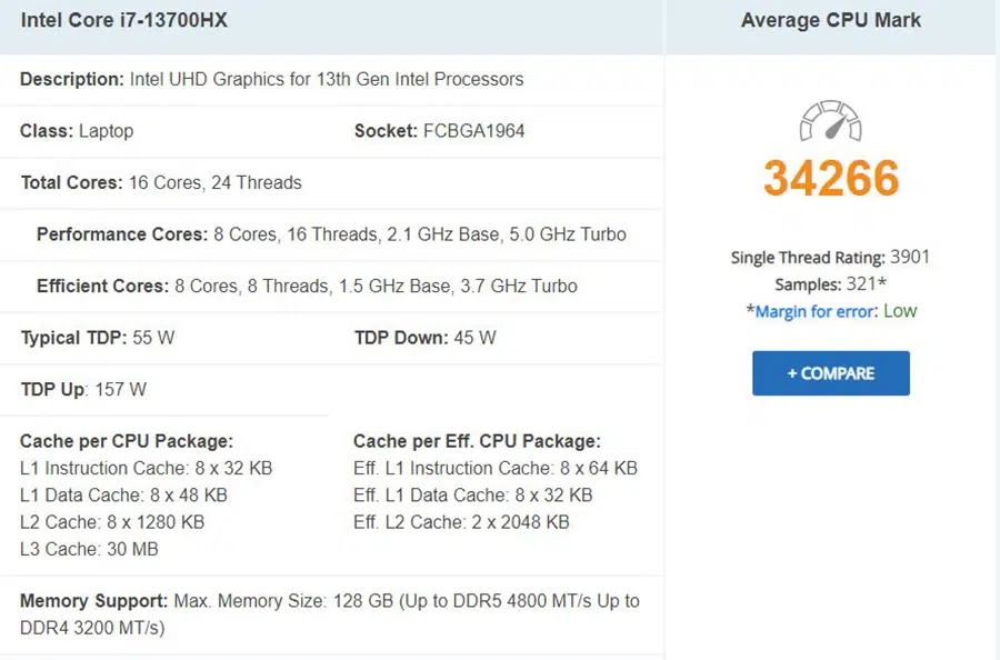 | CPU | Intel Core i7-13700HX (16 Cores, 24 Threads) |