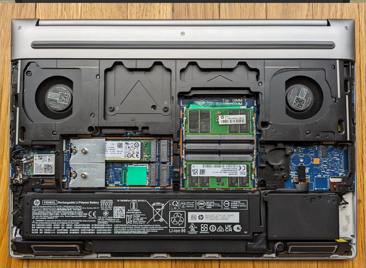 سیستم خنک کننده HP Zbook Fury 16 G10 یکی از نقاط قوت جدی آن محسوب می شود. این لپ تاپ از دو فن قدرتمند و چند لوله انتقال حرارت استفاده می کند که به خوبی گرمای تولید شده توسط CPU سری HX و GPU حرفه ای را دفع می کنند. در پردازش های سنگین و طولانی مدت، افت عملکرد کمتری نسبت به لپ تاپ های معمولی مشاهده می شود که برای کاربران حرفه ای بسیار حیاتی است.