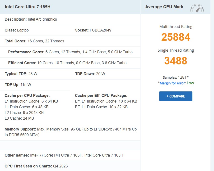 در قلب این لپ تاپ، پردازنده قدرتمند Intel Core Ultra 7 165H قرار دارد؛ پردازنده ای از خانواده Meteor Lake که اولین نسل از Core Ultra های اینتل محسوب می شود و در سال 2023 معرفی شده است. این CPU با معماری هیبریدی جدید، ترکیبی از هسته های Performance، Efficient و هسته های کم مصرف مخصوص امور هوش مصنوعی را ارائه می دهد. این ساختار باعث شده عملکرد چند هسته ای و راندمان انرژی به شکل محسوسی نسبت به نسل های قبل بهبود پیدا کند.