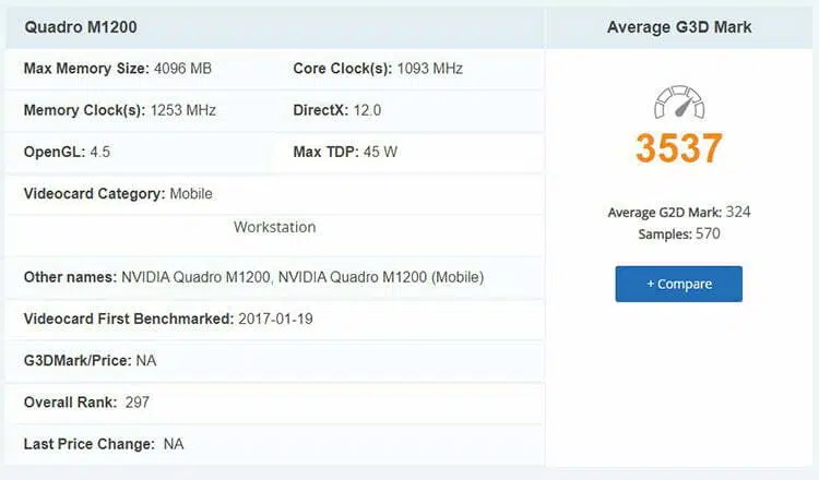 در بخش گرافیک، Lenovo ThinkPad P51 Xeon به کارت NVIDIA Quadro M1200 مجهز شده است. این کارت با 4 گیگابایت حافظه GDDR5 و توان حرارتی 75 وات، برای کارهای پردازشی حرفه ای و رندرینگ سه بعدی طراحی شده است. بر اساس تست های منتشر شده در 3DMark، امتیاز این GPU در حدود 3500 است و در نرم افزارهای CAD نسبت به GPU های معمولی مانند GTX 1050 عملکرد بهتری دارد.